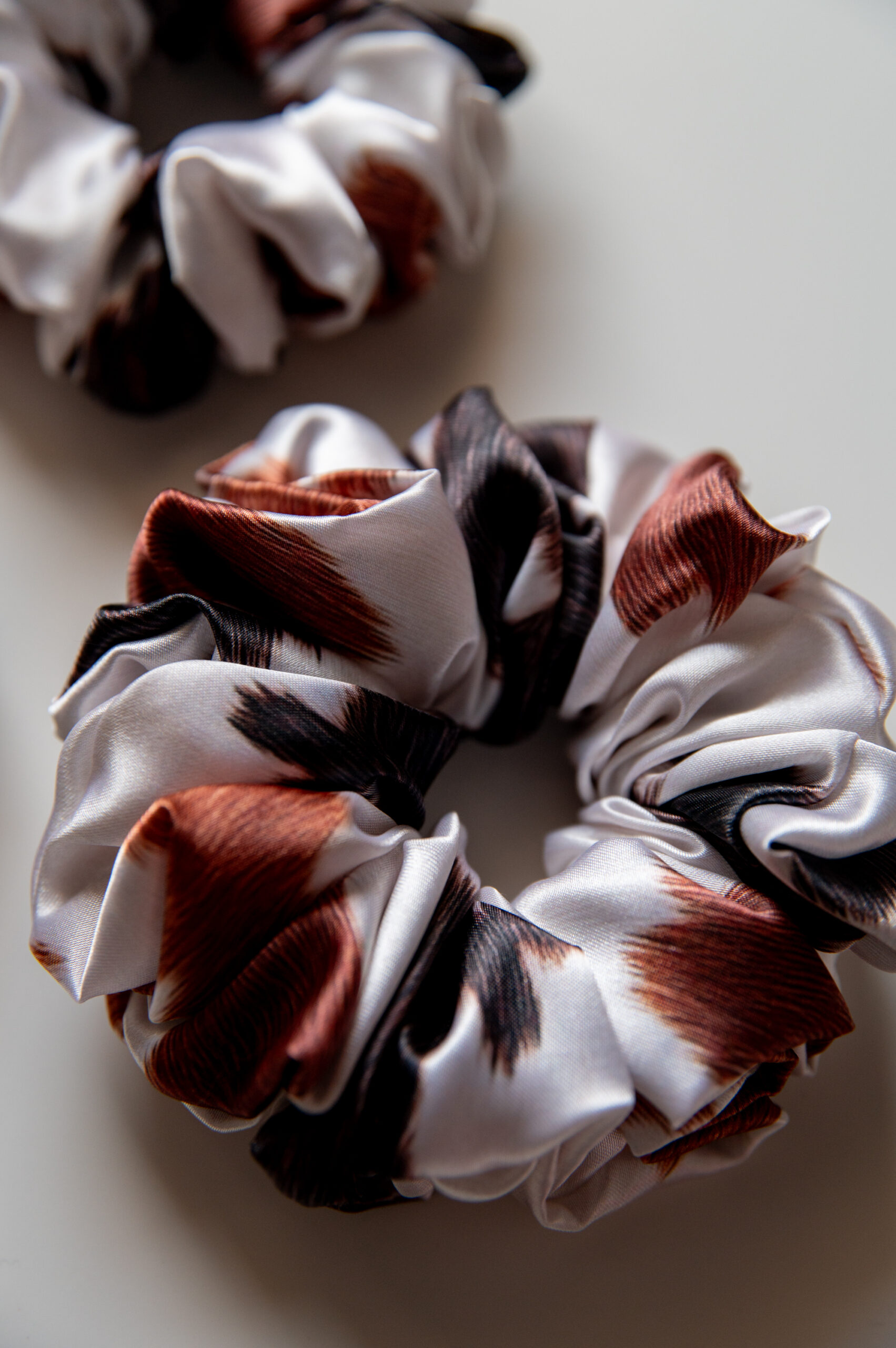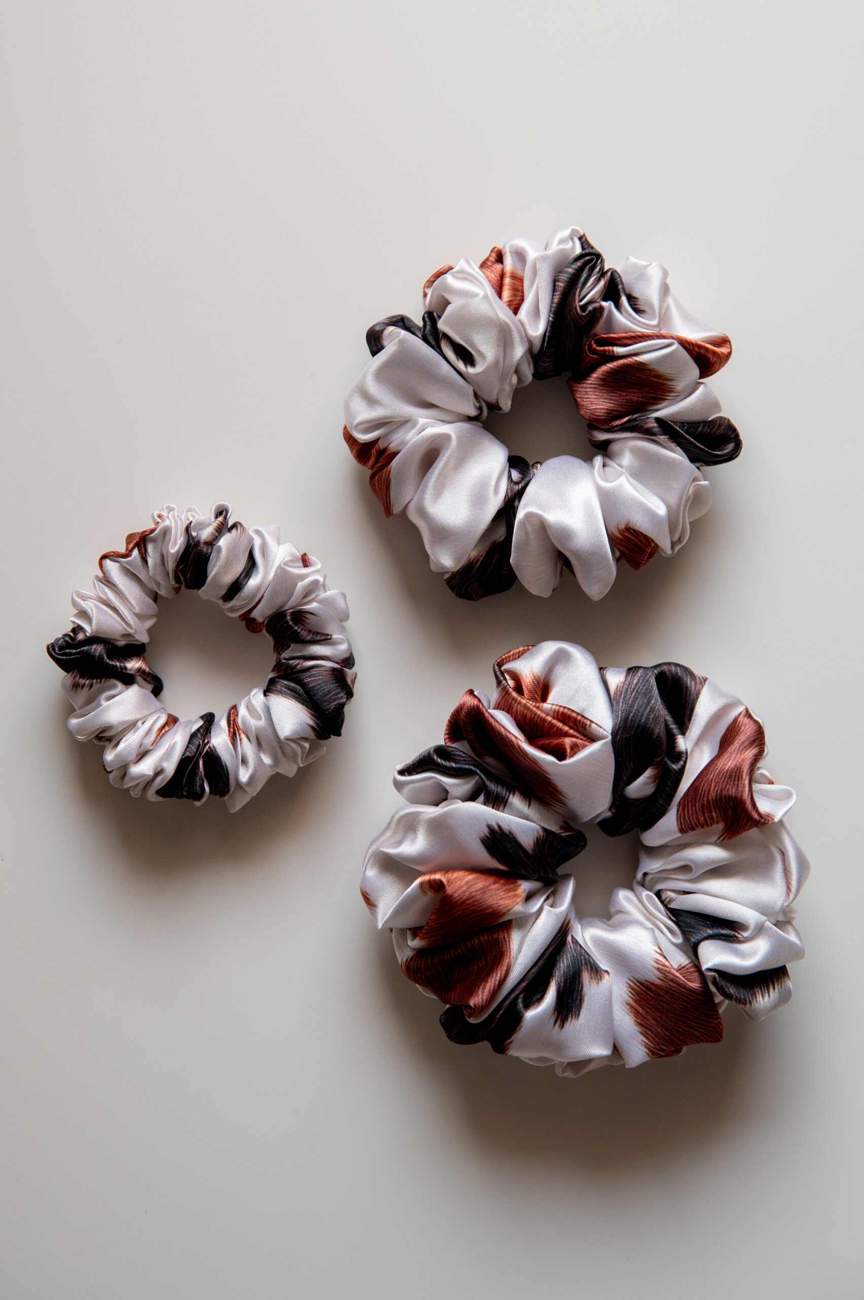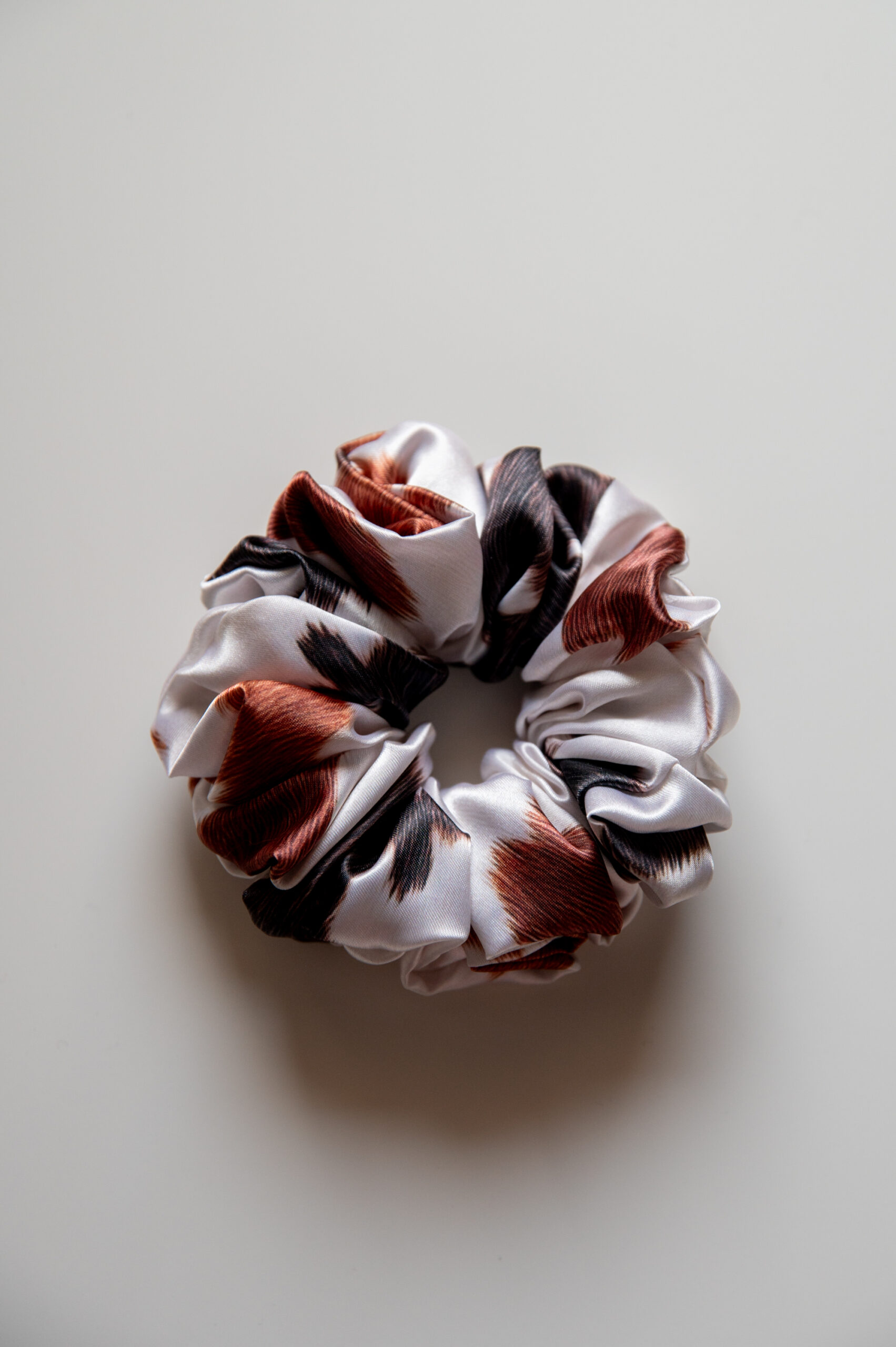 Piękna frotka do włosów – modny wzór krowy w czarne i rude łaty. To nie jest zwykła gumka do włosów.