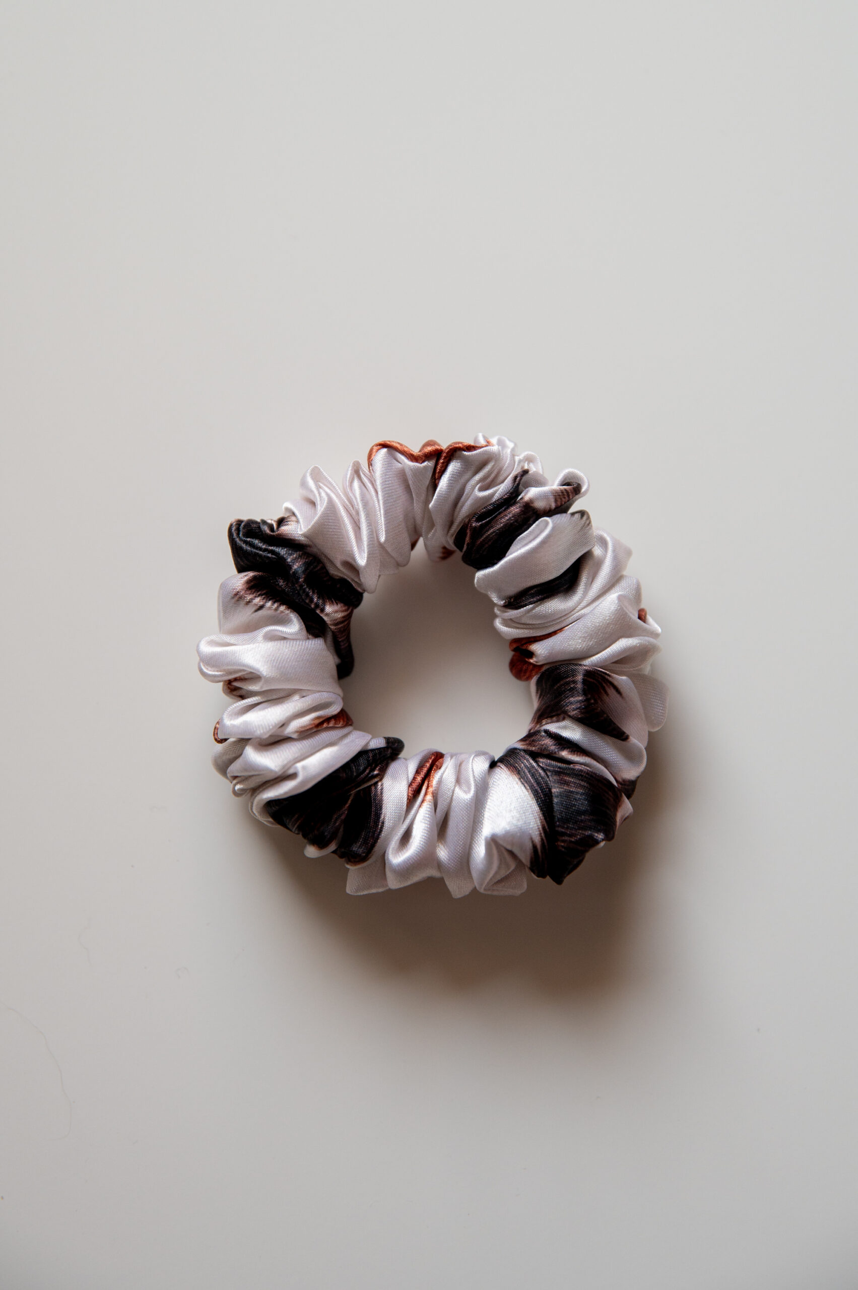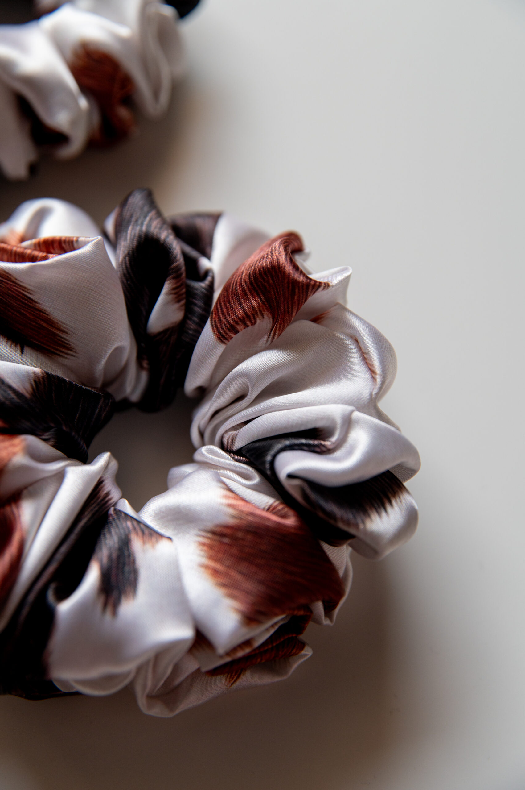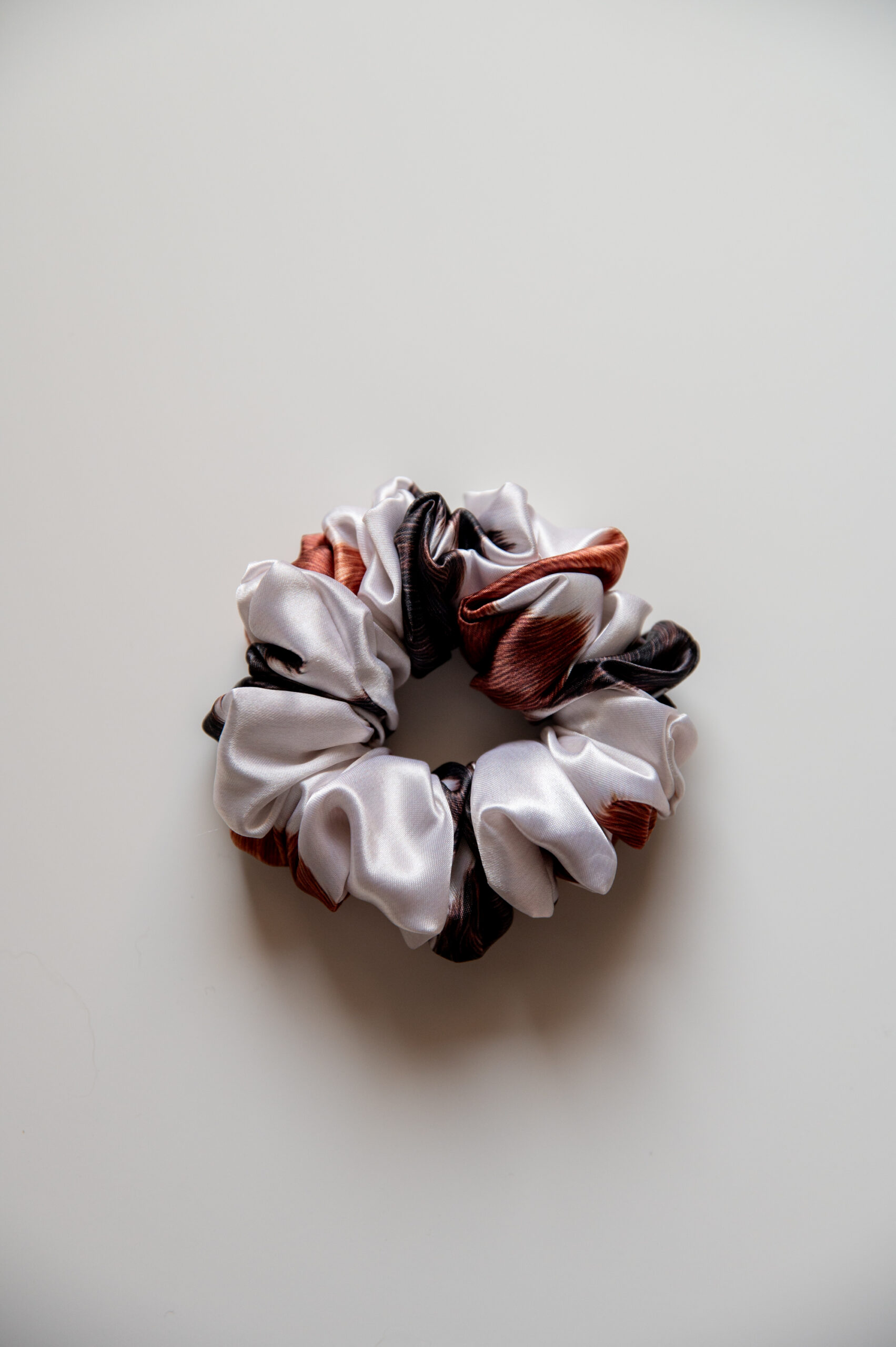 Piękna frotka do włosów – modny wzór krowy w czarne i rude łaty. To nie jest zwykła gumka do włosów.
